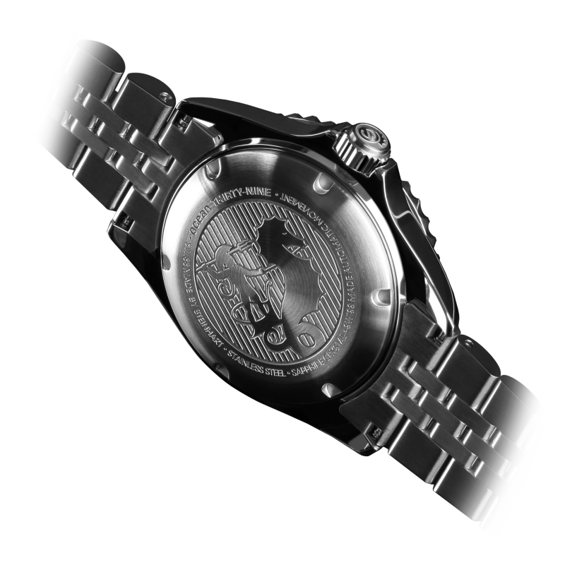 The sporty exclusiveness of the "Ocean 39 GMT.2 BLUE-RED Ceramic" makes it stand out from other diver watches. Its solid design guarantees highest resiliance as well as an outstanding quality.