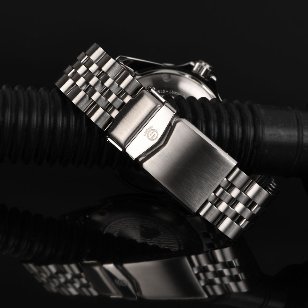 - Sapphire glass flat, with double anti-reflecting coatings on the interior side with date magnifier